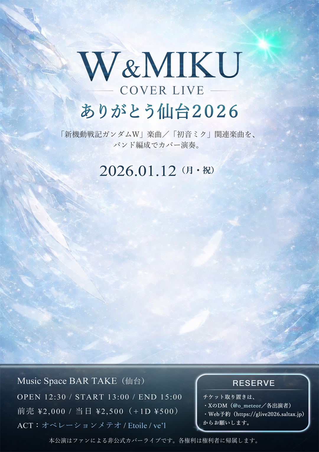 前売 \2,000 / 当日 \2,500(+1D \500)